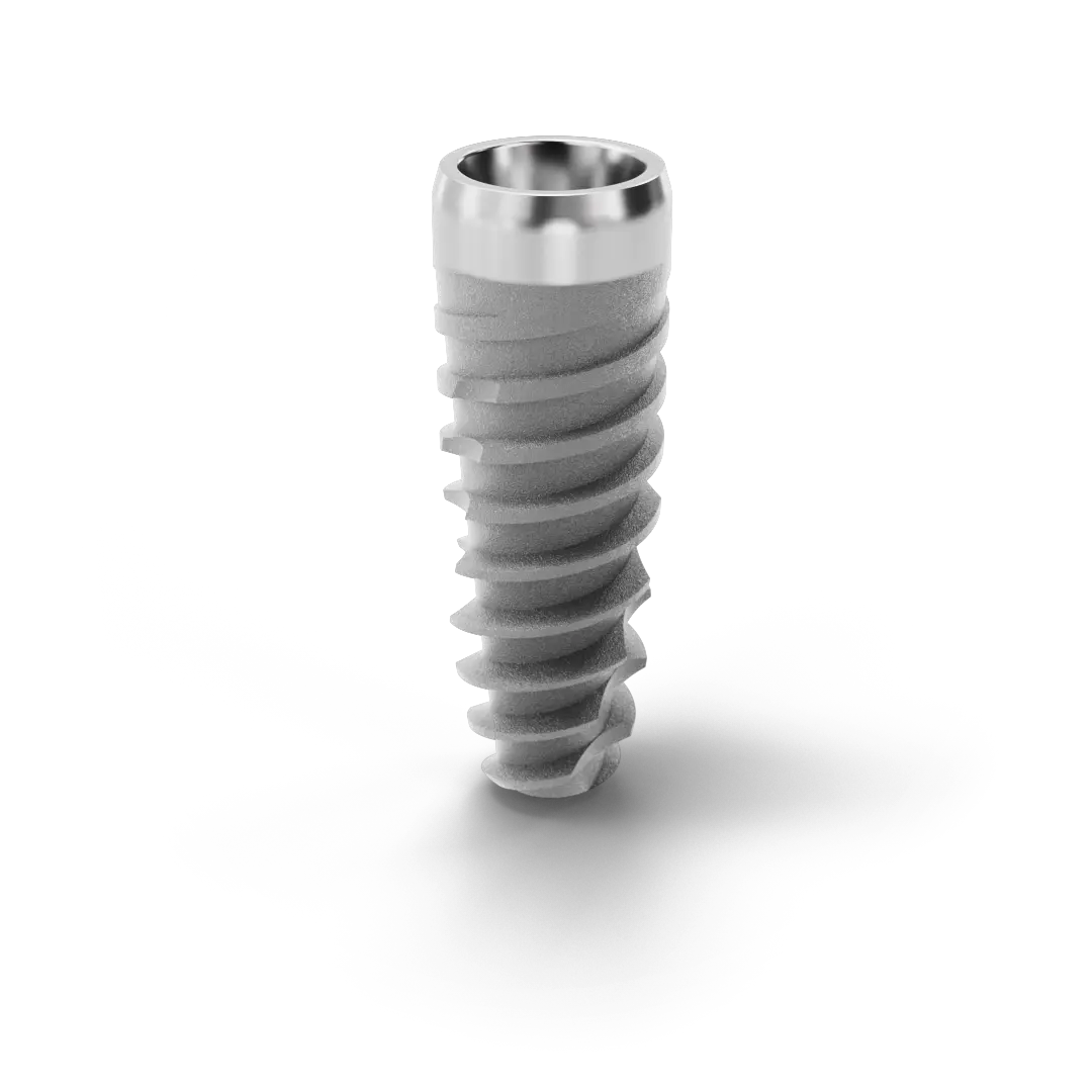 • El cuello mecanizado de altura 1.5mm asegura flexibilidad en la colocación vertical del implante para poder ser utilizado tanto a nivel de hueso como a nivel de tejidos blandos